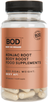 BOD Supplements should be taken as part of a varied, balanced diet and supported by an active lifestyle. Not suitable tor diabetes sufferers, children, pregnant women or those with scheduled surgery. Avoid long term use (6 months or longer) and stop immediately if you suffer any side effects and seek medical attention. All capsules should be consumed with over 350ml of water (1 large glass). For full effect 2 capsules(or 1g of Konjac root) should be consumed before each meal 3 times a day to support an enef1Y-restricted diet but do not exceed the recommended daily dose. Take with plenty of water as if you suffer swallowing difficulties or take with not enough water, you may choke. Keep out of children's reach. See base for best before.